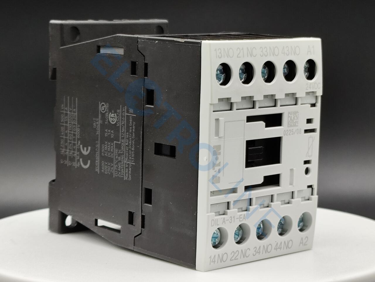 Вспомогательный контактор, Ассортимент: Вспомогательные контакторы DILA, Применение: Вспомогательный контактор, Описание: Основные устройства с принудительно ведомыми контактами, Техника присоединения: Винтовые клеммы, Расчетный рабочий ток AC-15 220 В 230 В 240 В: Ie= 4 A, 380 В 400 В 415 В: Ie= 4 A, Назначение контактов Замык. = замыкающий контакт: 3 замык, Назначение контактов Разм. = размыкающий контакт: 1 разм., Кодовое число/исполнение комбинаций кодовое число: 31E, комбинируется со вспомогательным контактным модулем: DILA-XHI(V)…, Управляющее напряжение: 24 V DC, Род тока: перем. ток/пост. ток: Питание пост. тока, Класс защиты: IP20, указания: Коммутирующие элементы согласно EN 50011., Обозначение соединений катушки в соответствии с EN 50005., Встроенная схема защиты., Стандарты и положения: IEC/EN 60947, EN 60947-5-1, VDE 0660, UL, CSA