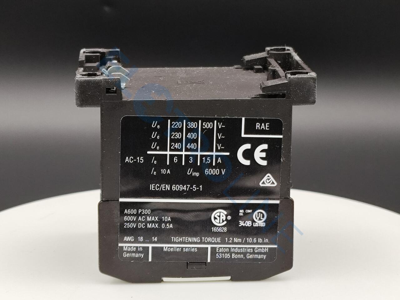 Вспомогательный контактор, Ассортимент: Мини-контакторы DILER, Применение: Вспомогательный контактор, Описание: с принудительно ведомыми контактами, Техника присоединения: Винтовые клеммы, Расчетный рабочий ток обычный термический ток, 1-полюсный разомкнут при 50 °C: Ith =Ie= 10 A, Расчетный рабочий ток AC-15 220 В 230 В 240 В: Ie= 6 A, 380 В 400 В 415 В: Ie= 3 A, Назначение контактов Замык. = замыкающий контакт: 3 замык, Назначение контактов Разм. = размыкающий контакт: 1 разм., Кодовое число/исполнение комбинаций кодовое число: 31E, Применяемое для: …DILE, Управляющее напряжение: 230 V 50 Hz, 240 V 60 Hz, Род тока: перем. ток/пост. ток: Питание перем. тока, Класс защиты: IP20, указания: Коммутирующие элементы согласно EN 50011., Обозначение соединений катушки в соответствии с EN 50005., Стандарты и положения: IEC/EN 60947, EN 60947-5-1, VDE 0660, UL, CSA