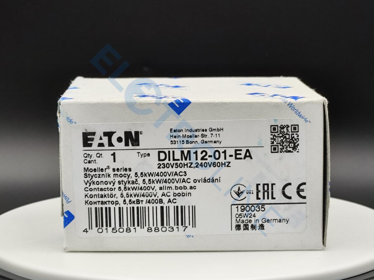 DILM12-01(230V50HZ,240V60HZ)-EA, 0000276865, Контактор 12 А, управляющее напряжение 230В (АС), 1НЗ доп. контакт, категория применения AC-3, AC-4