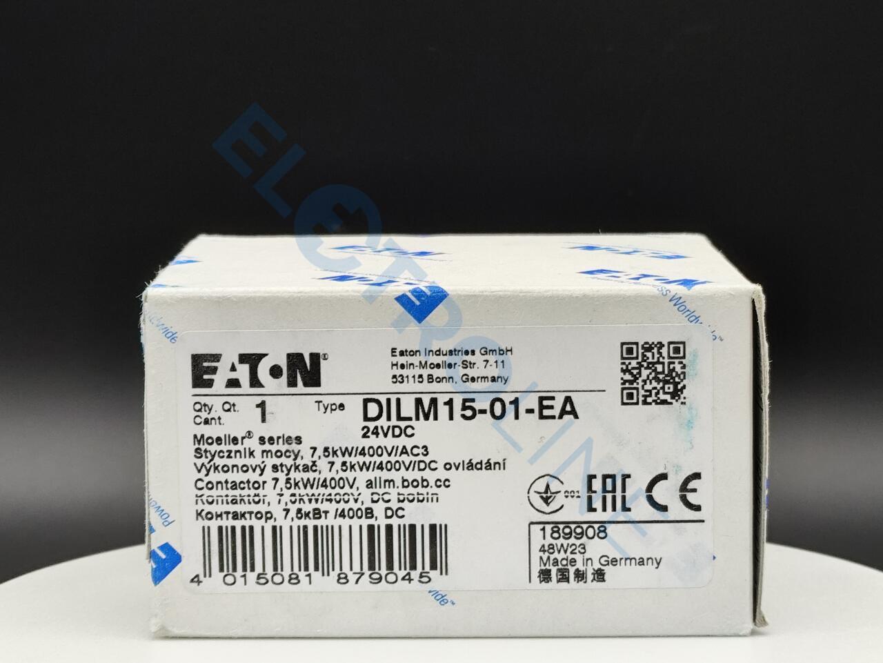 DILM15-01(24VDC)-EA, 0000290108, Контактор 15,5 А, управляющее напряжение 24В (DС), 1НЗ доп. контакт, категория применения AC-3, AC-4