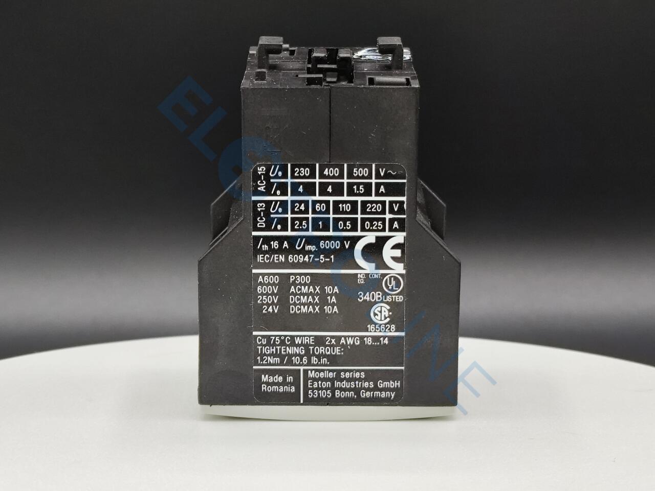 Вспомогательный контактный модуль, с принудительно ведомыми контактами, Функция: для стандартных применений, 2-полюсн., Техника присоединения: Пружинные клеммы, Расчетный рабочий ток AC-15 220 В 230 В 240 В: Ie= 4 A, Расчетный рабочий ток AC-15 380 В 400 В 415 В: Ie= 4 A, Назначение контактов Замык. = замыкающий контакт: 1 замык, Назначение контактов Разм. = размыкающий контакт: 1 разм., Вид монтажа: Фронтальная установка, Применяемое для: DILM(C)7-10…, DILM(C)9-10…, DILM(C)12-10…, DILM(C)15-10…, DILM(C)17-10…, DILM(C)25-10…, DILM(C)32-10…, DILM38-10…, DILMP20…, DILMP32-10…, DILMP45-10…, DILL…, DILMF8-10…, DILMF11-10…, DILMF14-10…, DILMF17-10…, DILMF25-10…, DILMF32-10…, исполнение: Вспомогательный контакт верхней установки, указания: Контакты с принудительным управлением, согласно IEC/EN 60947-5-1, приложение L, в модулях вспомогательных контактов, а также для встроенных вспомогательных контактов DILM 7 - DILM32, Вспомогательный размыкающий контакт, пригоден в качестве зеркального контакта в соответствии с IEC/EN 60947-4-1 приложение F (не НЗ с задержкой размыкания)