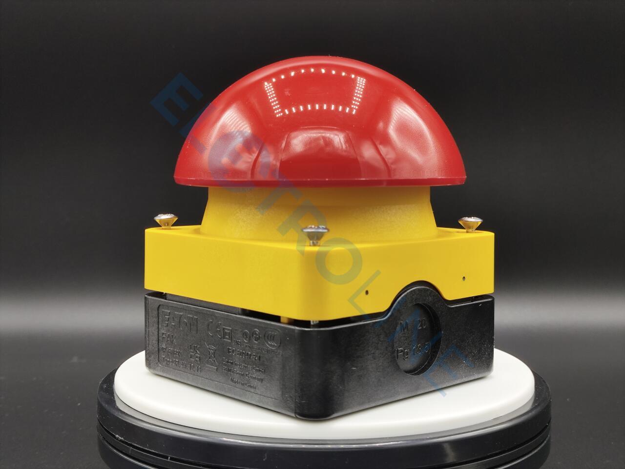 Выключатели, управляемые ногой и ладонью, законченное устройство, Функция: с фиксацией, Описание: Разблокирование путем вытягивания, Выключатель аварийного остановка, с защитой от перегрузки согласно ISO 13850/EN 418, Назначение контактов Разм. = размыкающий контакт: 1 разм., Назначение контактов Указание = защитная функция посредством принудительного размыкания согласно IEC/EN 60947-5-1., Цвет Кнопка: красный, Цвет Верхняя крышка корпуса: желтый, Цвет Нижняя часть корпуса: черный, Подключение к SmartWire-DT: нет, Стандарты и предписания: IEC/EN 60947-5-5, VDE 0660, Класс защиты IEC/EN 60529: IP66, IP67, IP69K, установочное положение: любая