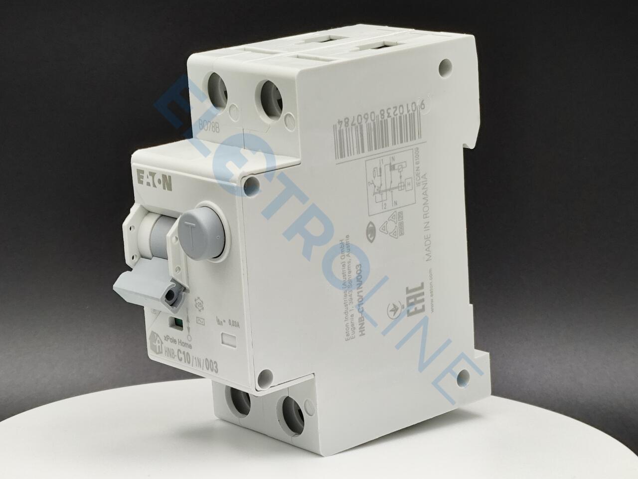 HNB-C10/1N/003 – это автоматический выключатель дифференциального тока HNB от бренда Eaton. Устройство предназначено для использования в электрических цепях с напряжением от 220 до 400 В. Оно служит для защиты от токов короткого замыкания, перегрузок, а также токов утечки. Автоматический выключатель дифференциального тока (сокращенно дрифавтомат) выступает в роли защиты автоматических выключателей и устройств защитного отключения тока (узо).