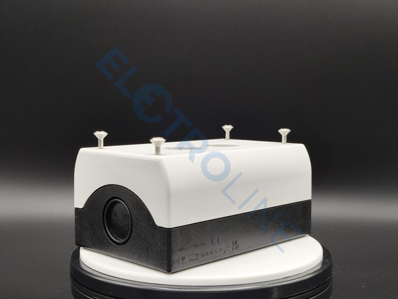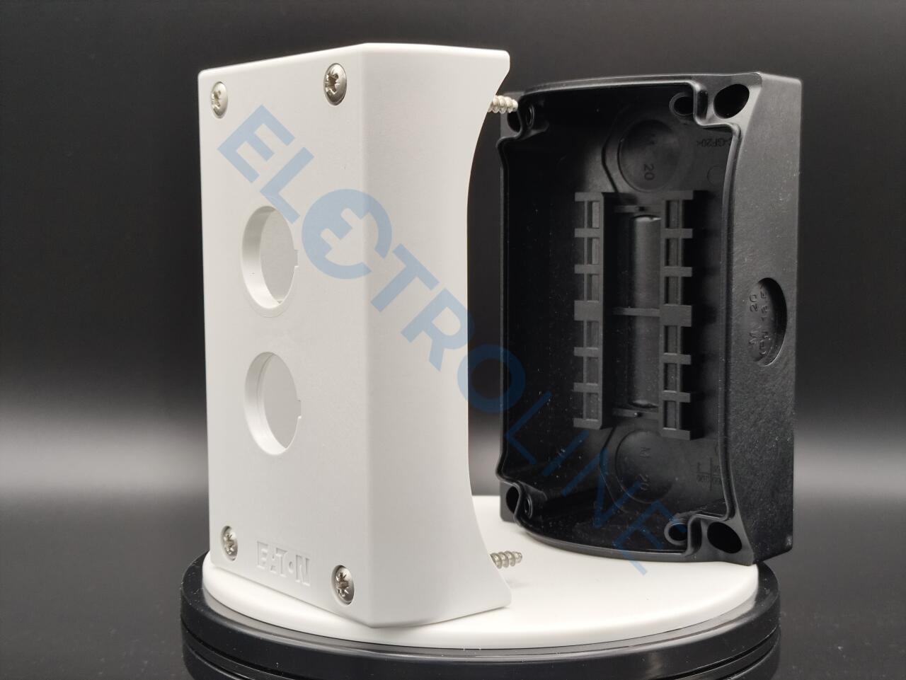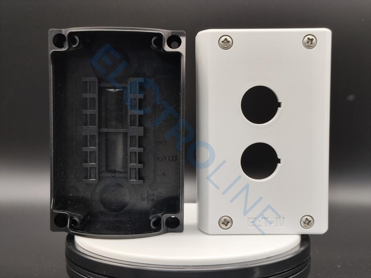 Корпус для поверхностного монтажа, корпус: пластик, с винтами из нержавеющей стали, Места установки: 2, ввод проводки: задн.: 2, M20, вверху: 1 x M20, сбоку: 2 x M20/M25 (по 1 шт. на сторону), Класс защиты: IP66, IP67, IP69K, Цвет Значение RAL: RAL 7035, Цвет: Нижняя часть корпуса, чёрная, Подключение к SmartWire-DT: нет, Применяемое для: (Illuminated) pushbuttons, (Illuminated) selector switches, Key-operated pushbuttons, Indicator light, controlled stop/emergency-stop buttons with yellow label