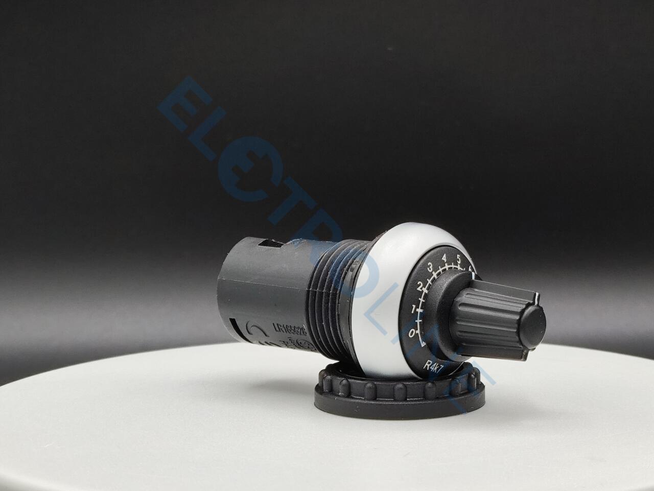 Потенциометр, Дизайн RMQ: классически, Идентификатор типа: M22, установочный диаметр: 22.5 мм, Отдельное устройство, Описание: 3 отдельных винтовых соединения, Точность значения сопротивления: ±10 % (линейн.), Сопротивление: R= 4,7 kΩ, Номинальная мощность: P= 0.5 W, Класс защиты: IP66, Рамка Titan, Подключение к SmartWire-DT: нет, Стандарты и предписания: IEC/EN 60947, VDE 0660