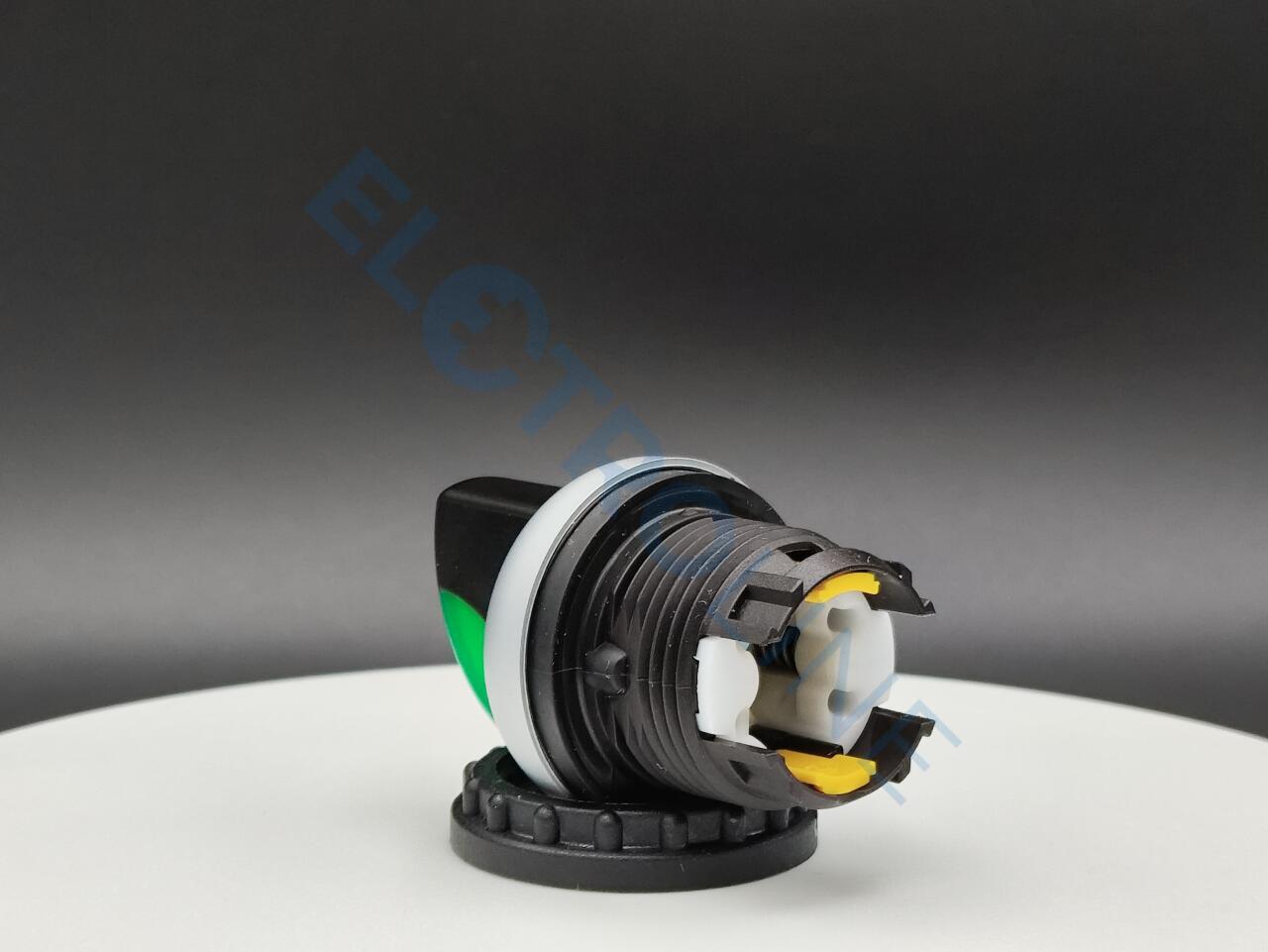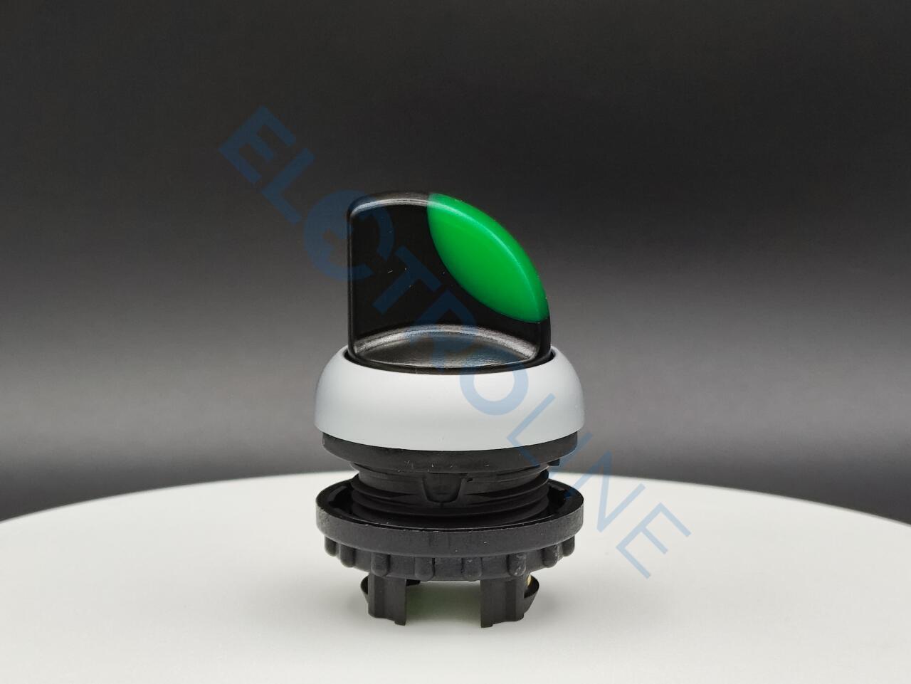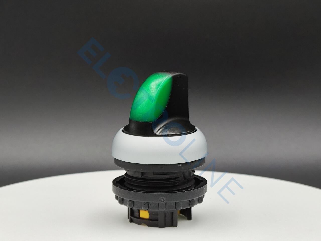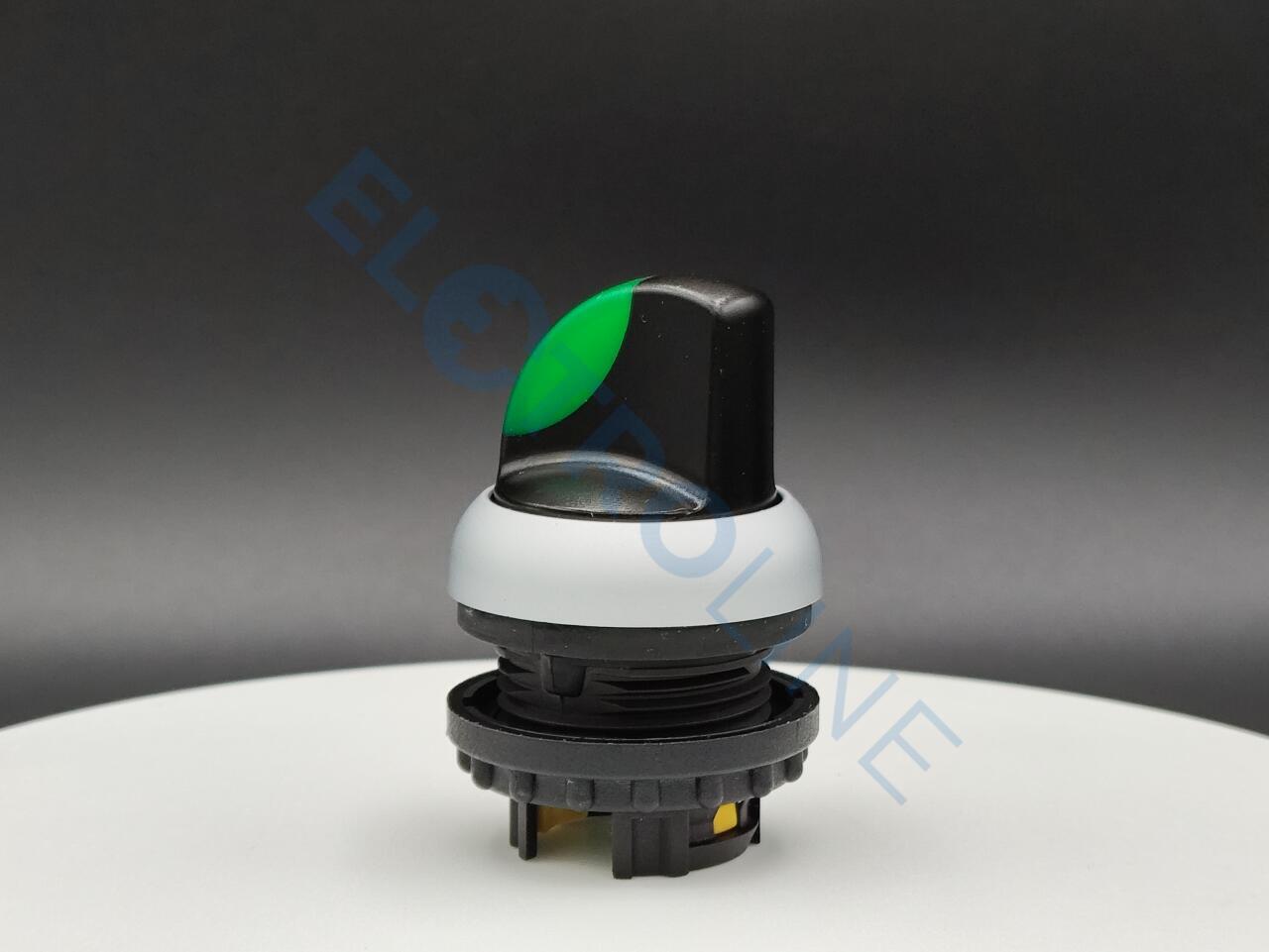 Переключатель с поворотной ручкой 3-х позиционный 40⁰, без фиксации, цвет зеленый с подсветкой