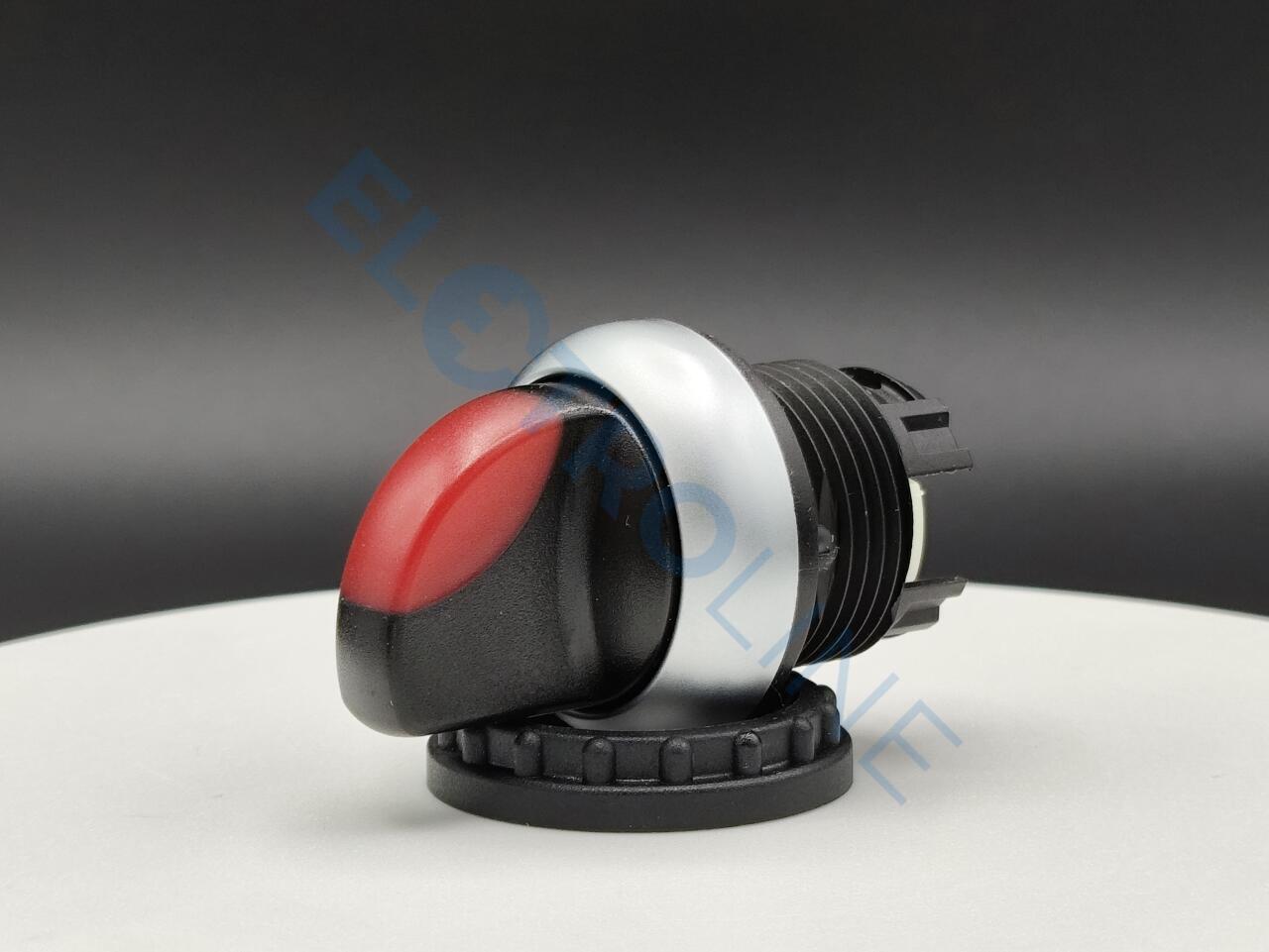 Переключатель с поворотной ручкой 3-х позиционный 60⁰, c фиксацией, цвет красный с подсветкой