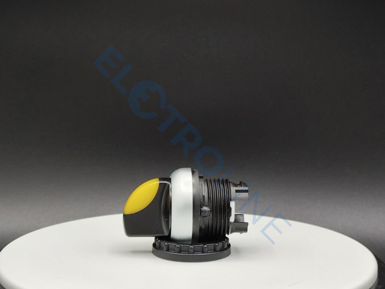 Переключатель с поворотной ручкой 3-х позиционный 60⁰, c фиксацией, цвет желтый с подсветкой