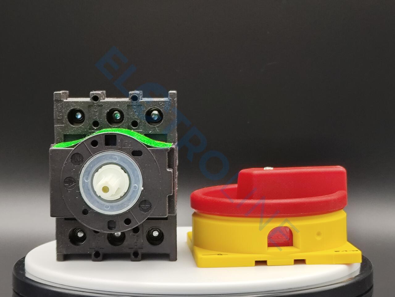 Главные выключатели, P1, 32 A, Монтаж, 3-полюсн., Функция аварийного выключения, с красной поворотной ручкой и с желтым храповым венцом, запираемый в положении 0