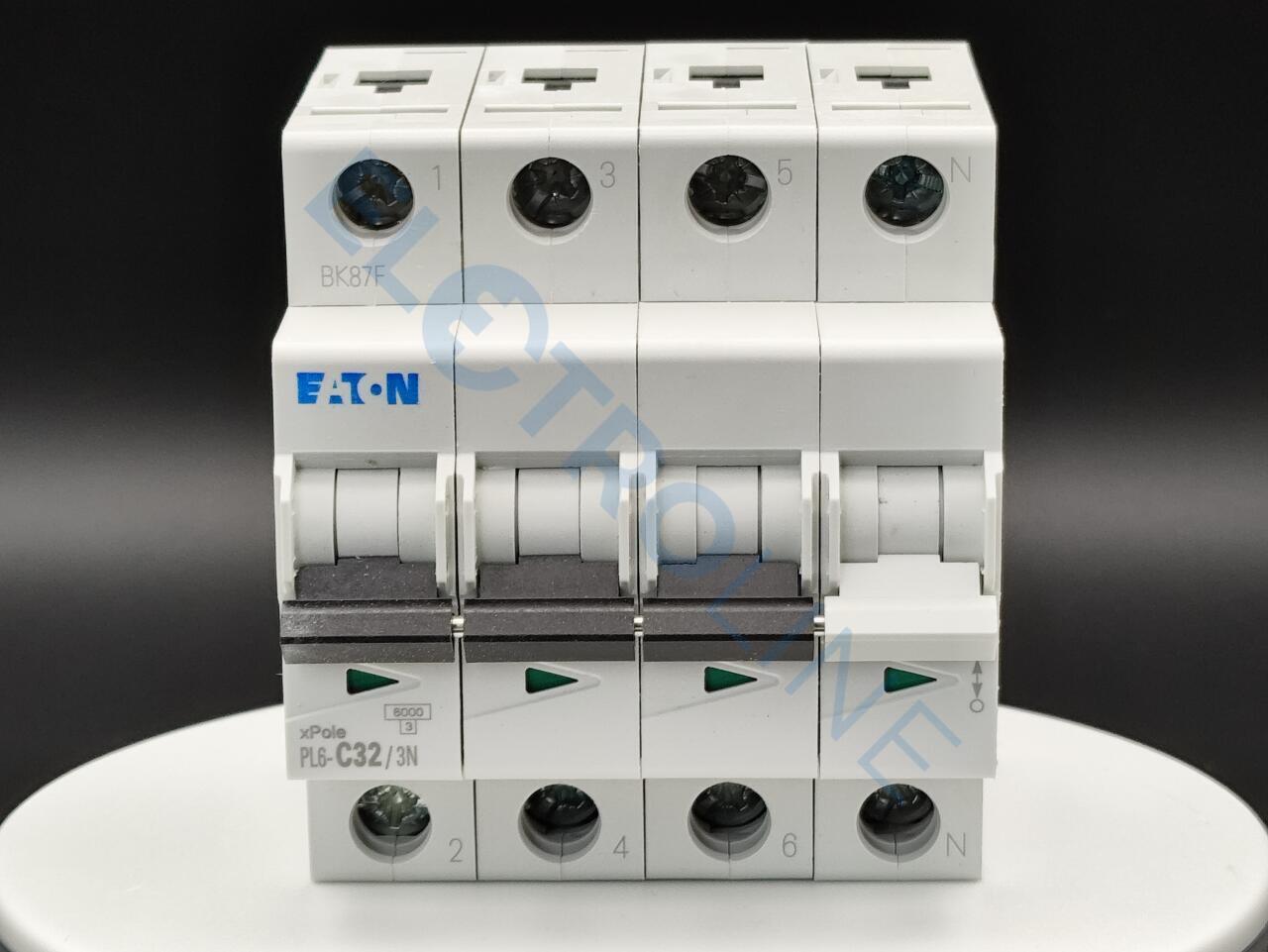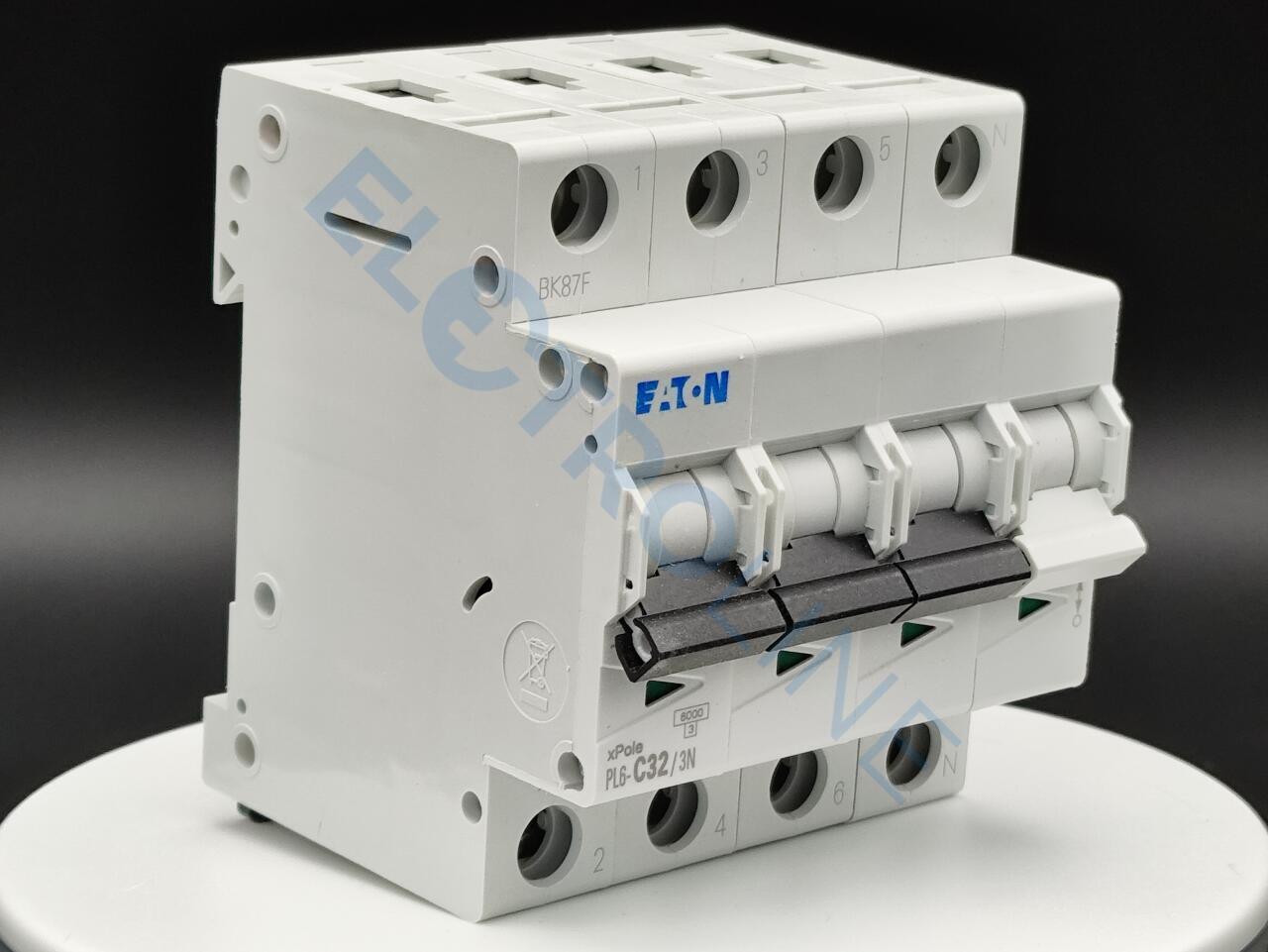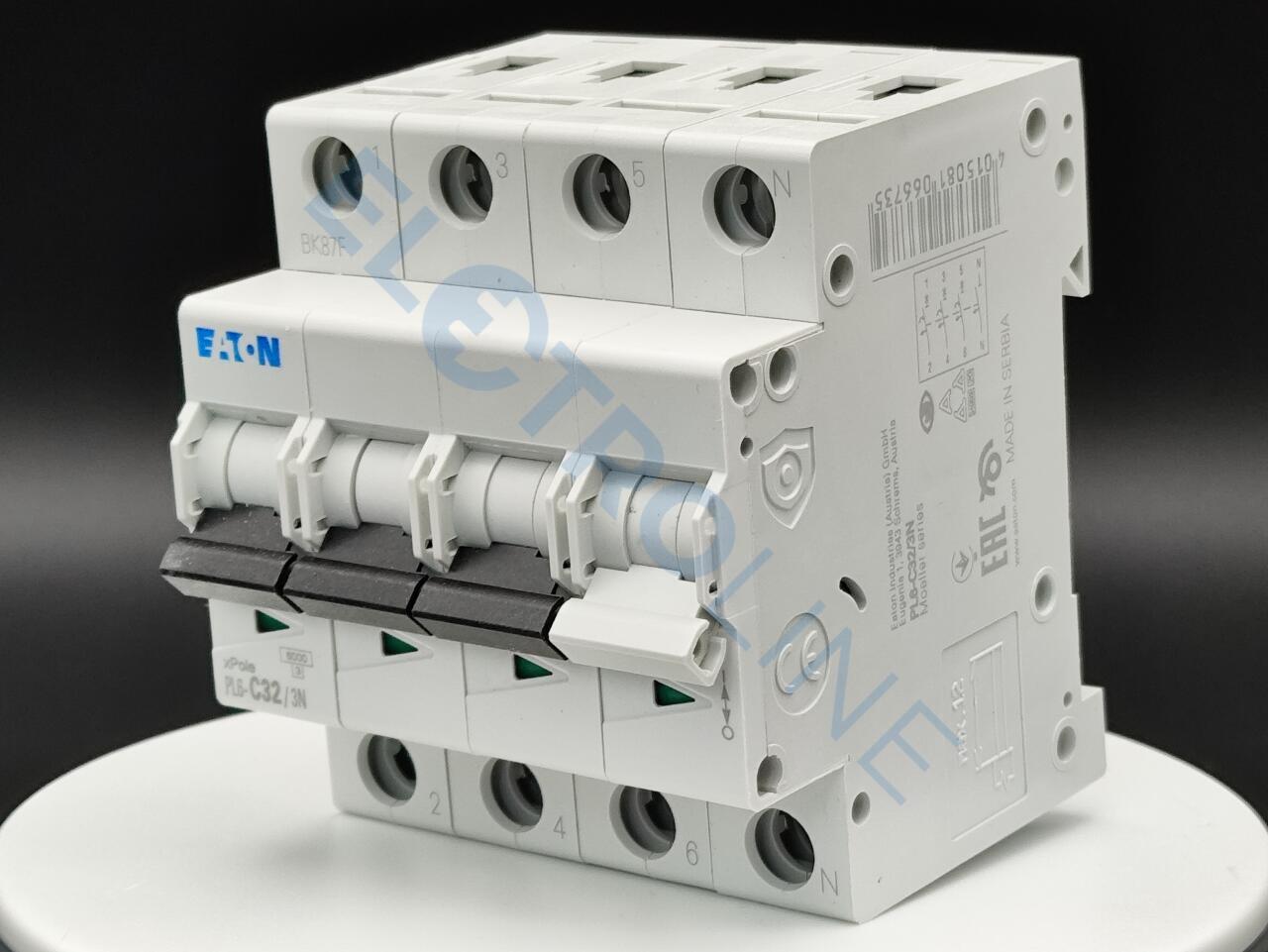 Линейный защитный автомат PL6, 3-полюсн. + N, Характеристика срабатывания: C, Расчетный рабочий ток In: 32 A, Rated switching capacity according to IEC/EN 60898-1: 6 kA, Коммутационные устройства для жилых и специальных зданий