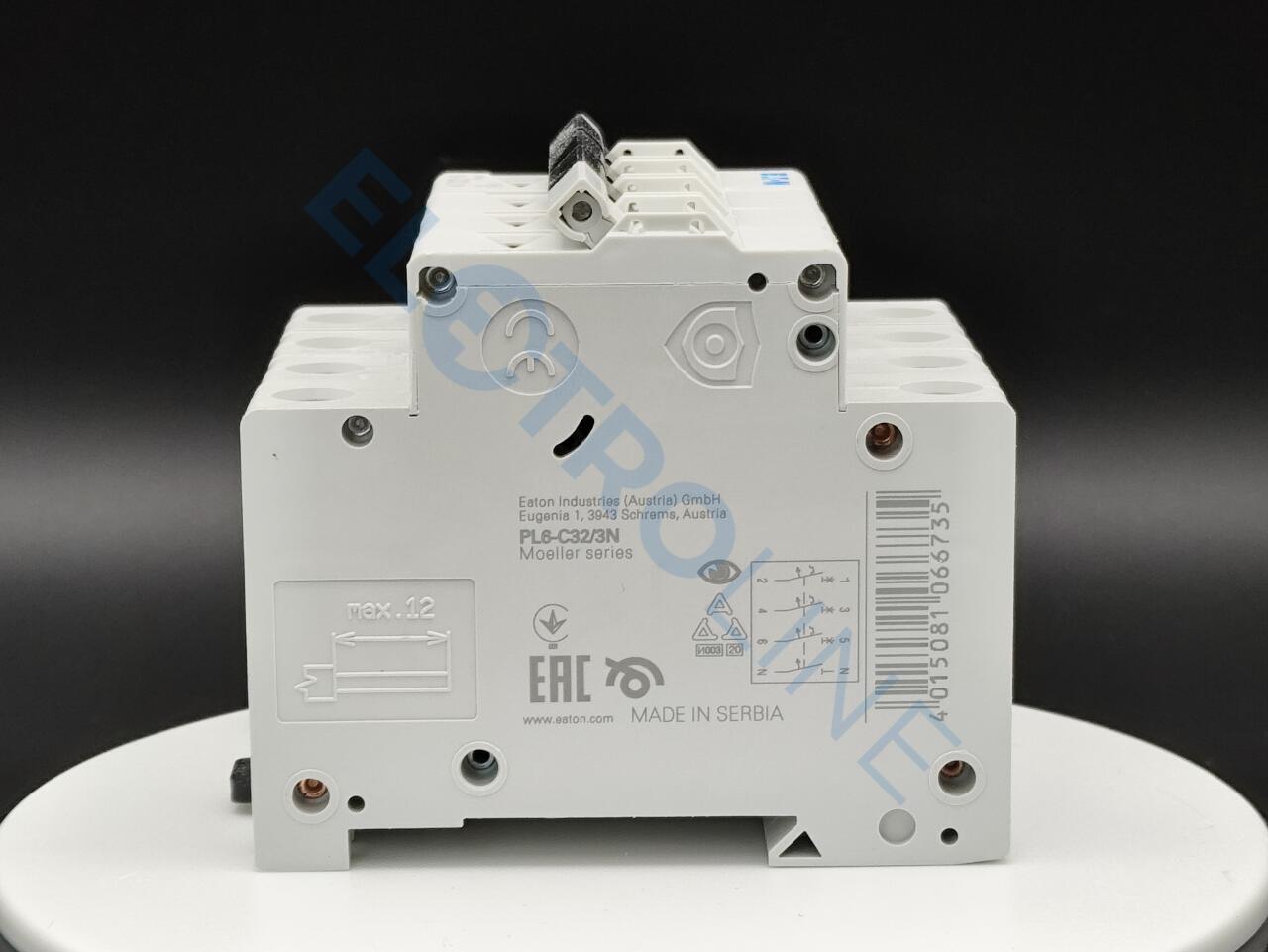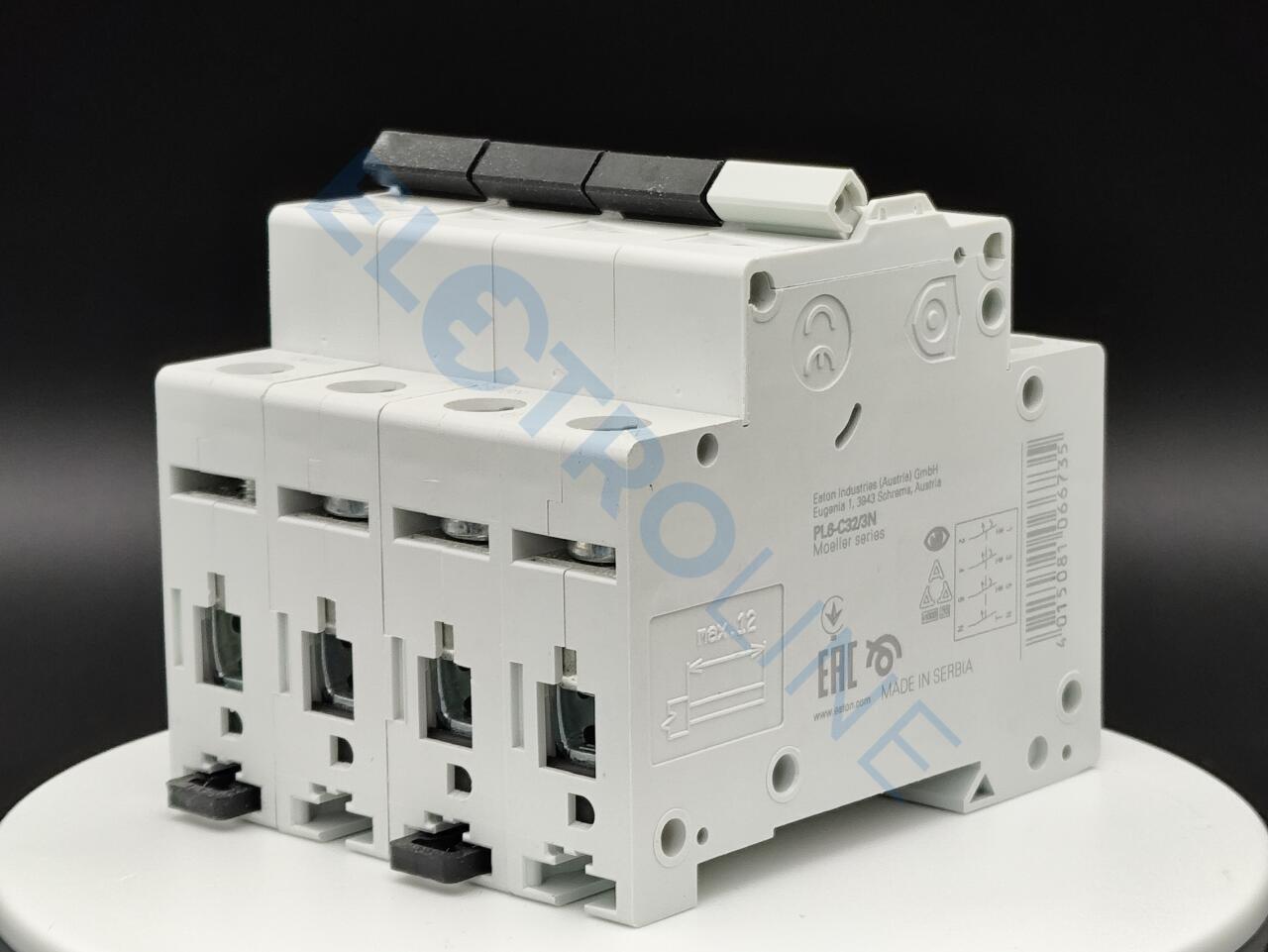 PL6-C32/3N, 0000106913, Автоматический выключатель 32А, кривая отключения С, 3+N полюса, откл. способность 6 кА