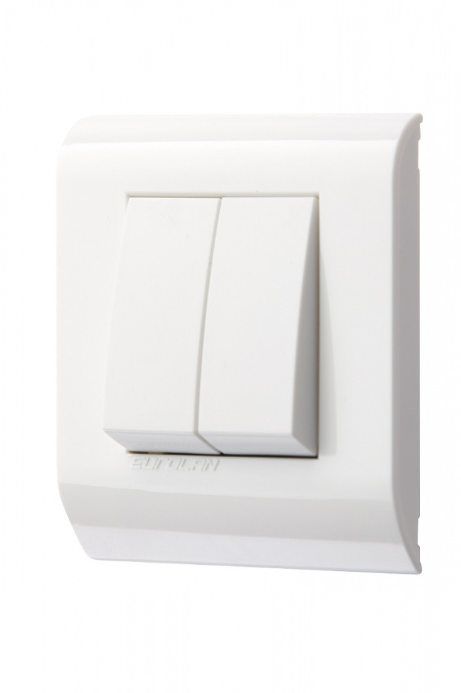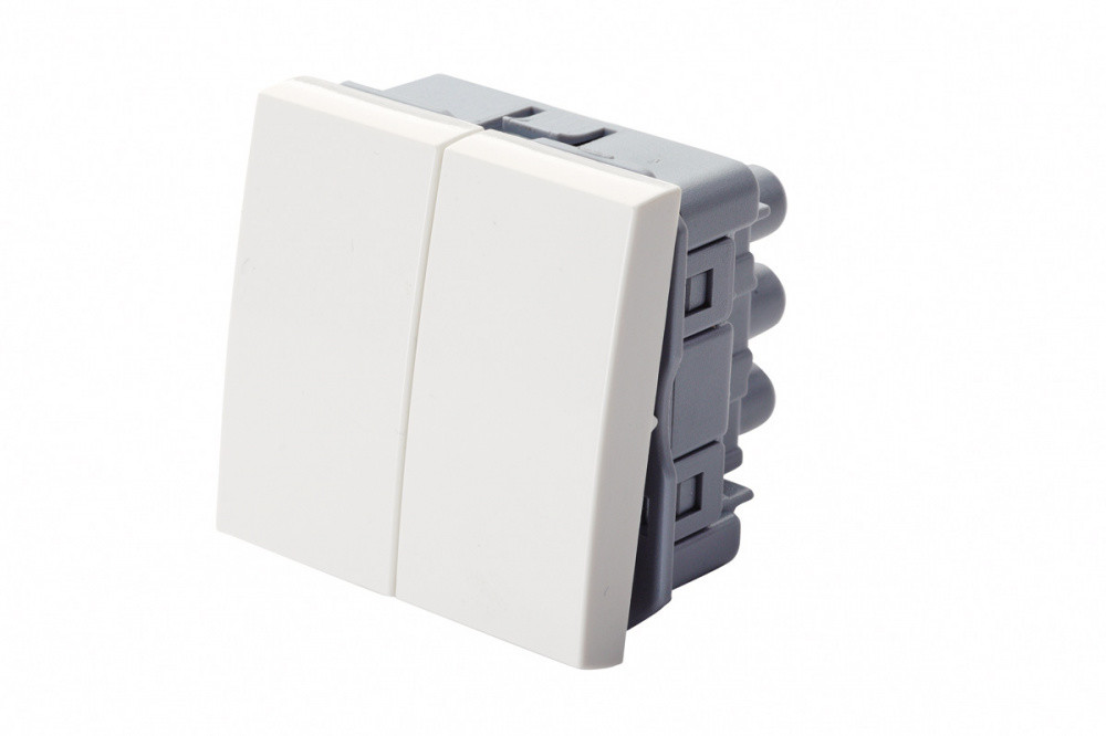 16V-20-02WT, Выключатель двухклавишный 45 × 45 мм 10A, 250B, белый